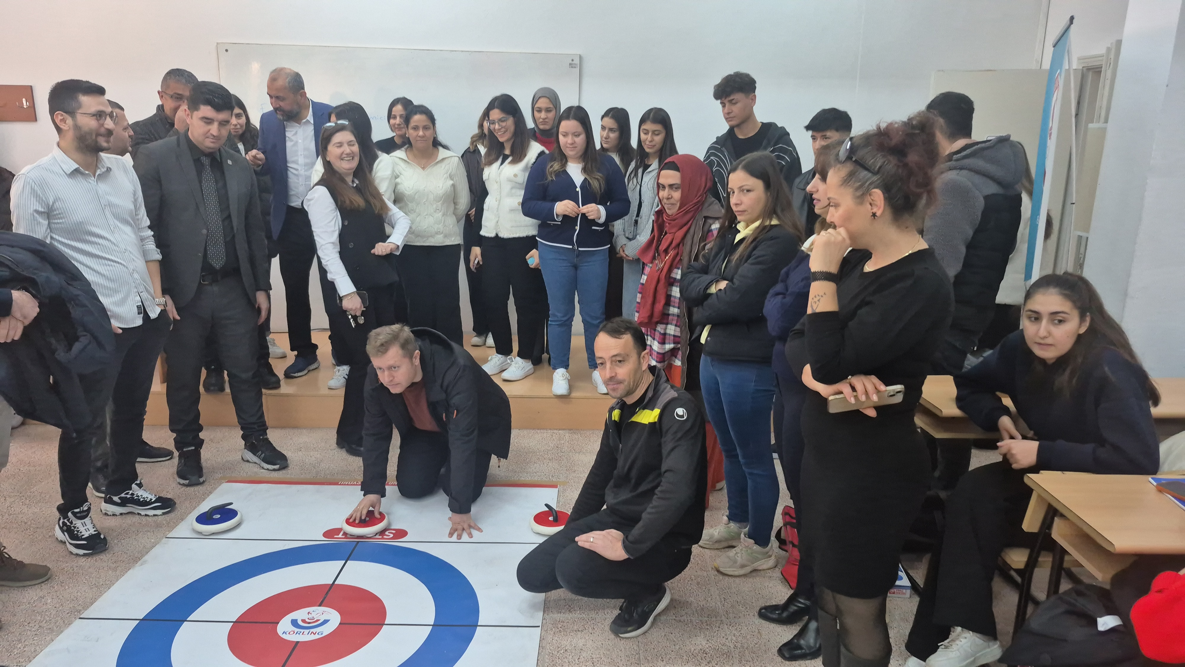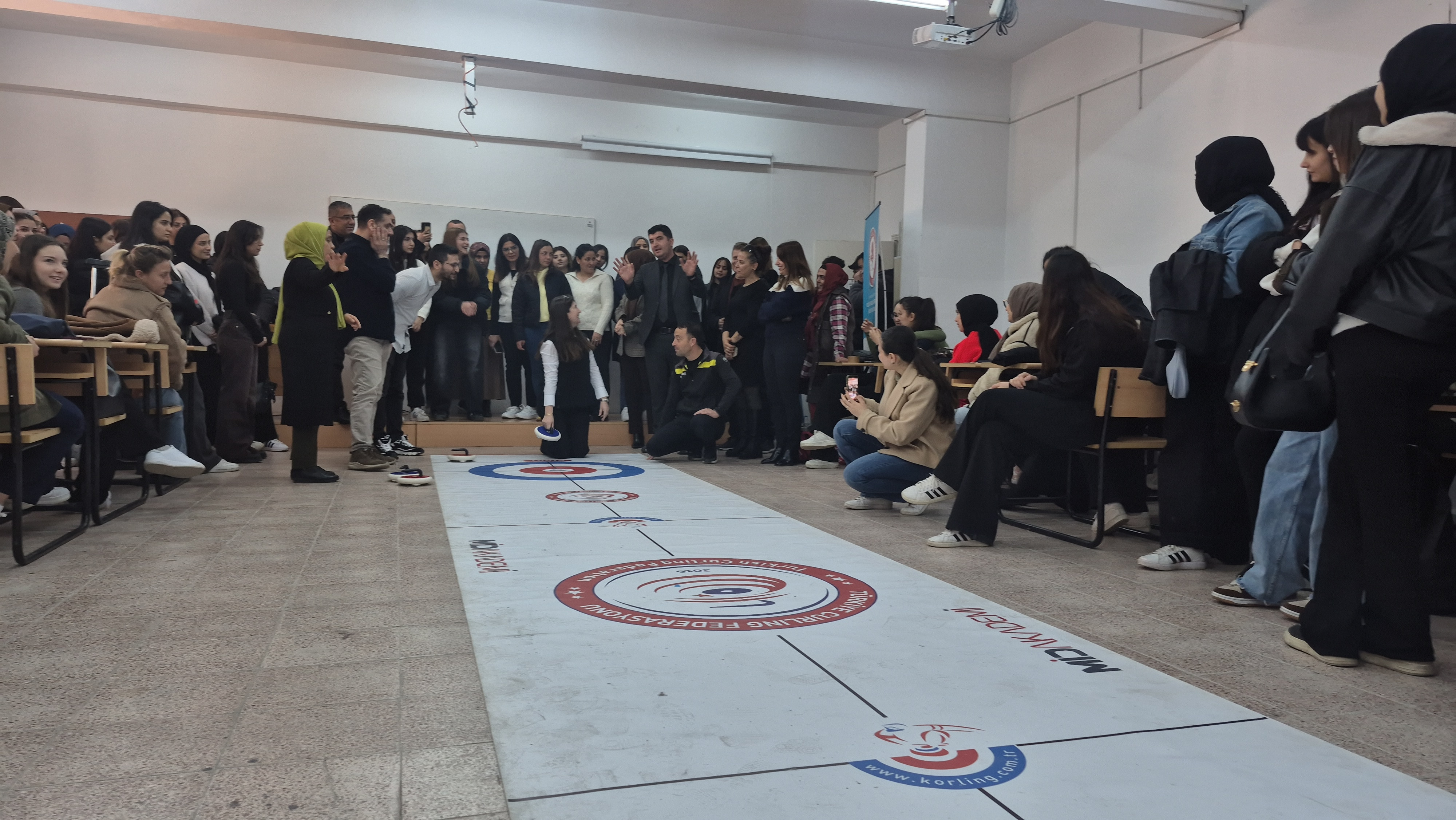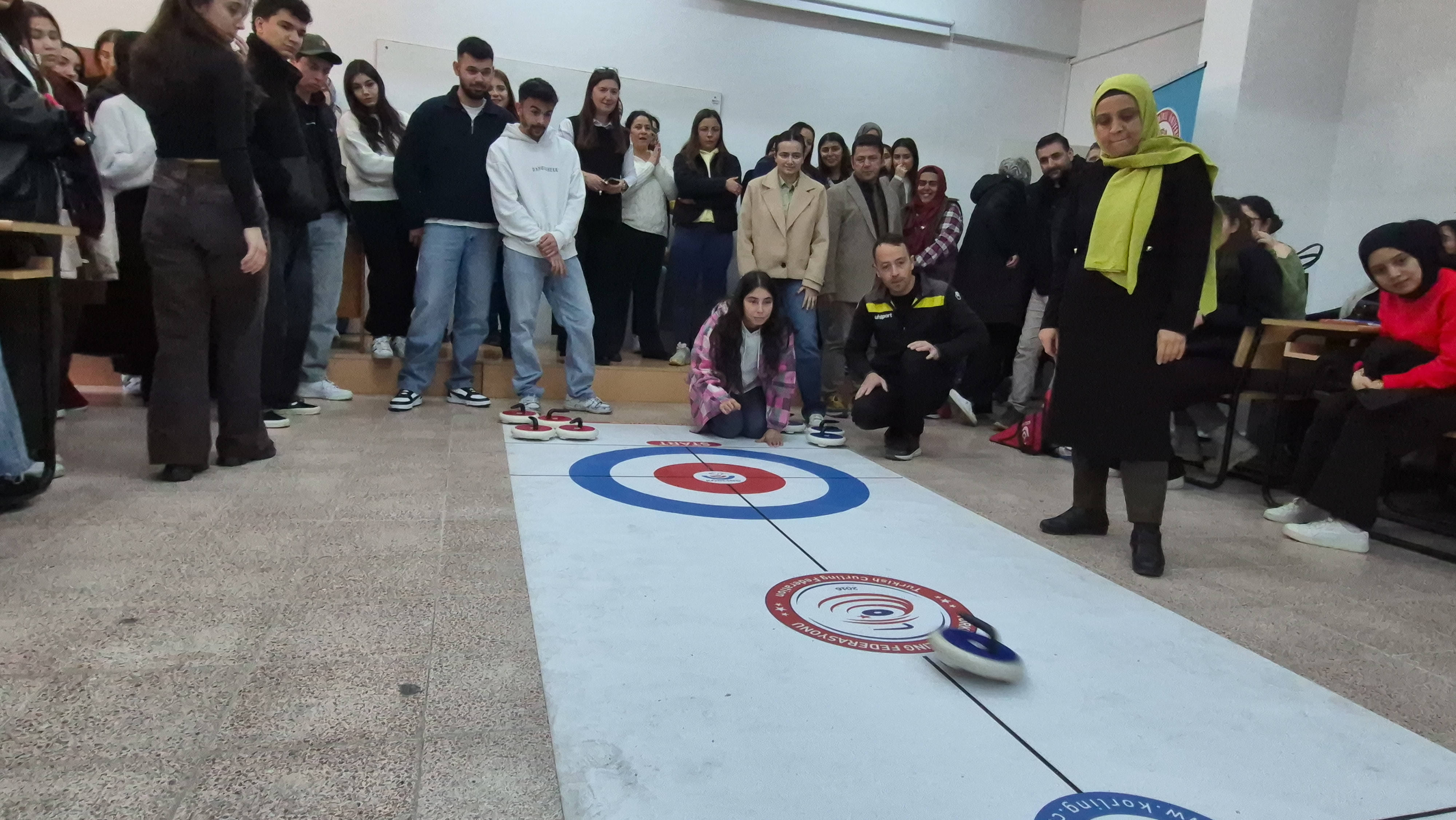 Etkinlik sonunda öğrenciler floor curling müsabakaları yaparak hem rekabet heyecanı yaşadı hem de sporun inceliklerini uygulamalı olarak öğrenme imkânı buldu.