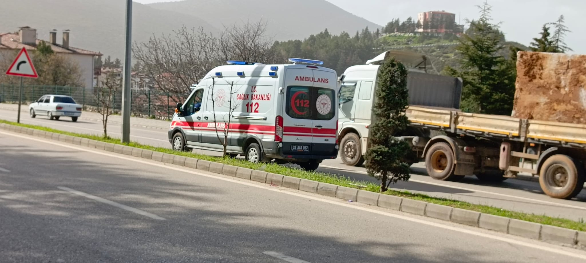 EĞİRDİR’DE MOTOSİKLET SÜRÜCÜSÜ REFÜJE ÇARPTI: BİLİNCİ KAPALI