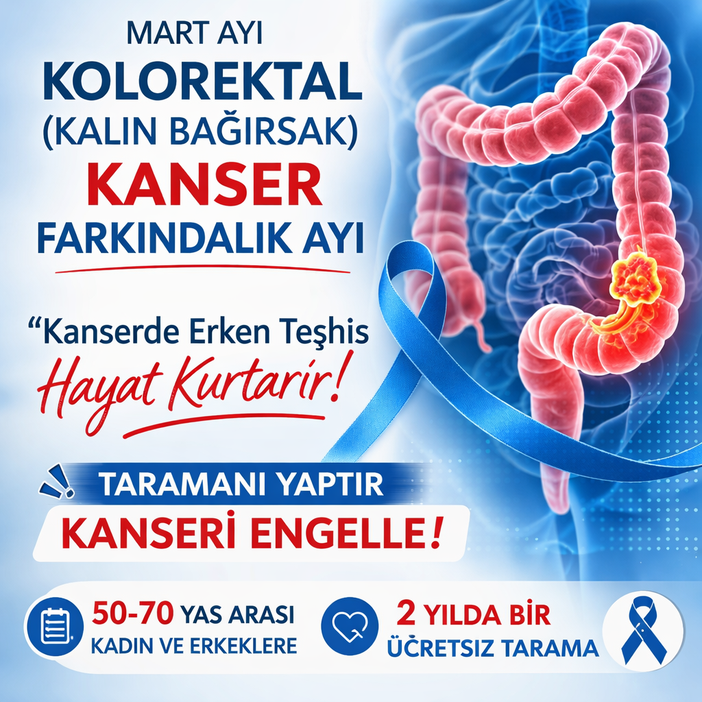 Kemal ERBEN /EĞİRDİR, (DHA) -Mart ayı, dünya genelinde olduğu gibi Türkiye’de de “Kolorektal (Kalın Bağırsak) Kanser Farkındalık Ayı” olarak çeşitli etkinliklerle anılıyor. Sağlık uzmanları, kalın bağırsak kanserinde erken teşhisin hayat kurtardığını vurgulayarak özellikle 50 yaş ve üzerindeki bireylerin düzenli tarama yaptırmasının büyük önem taşıdığını belirtiyor.