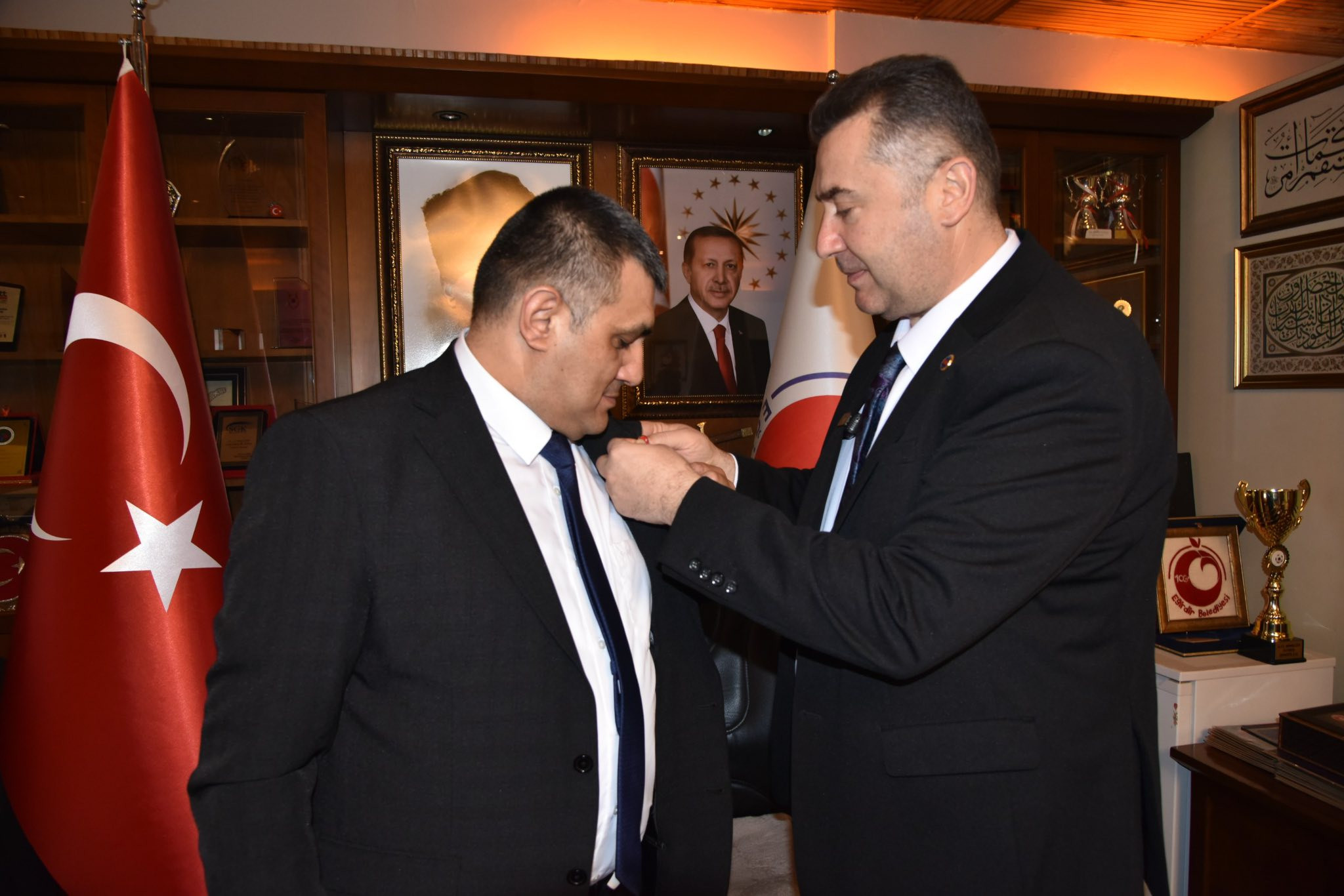 Ziyaretin ardından Belediye Başkanı Mustafa Özer, Mardin’in Nusaybin ilçesinde Türk bayrağımıza yönelik gerçekleştirilen saldırıyı kınadığını ifade ederek, Oda Başkanı Ali Öz ve yönetim kurulu üyelerine Türk Bayrağı rozeti takdim etti.