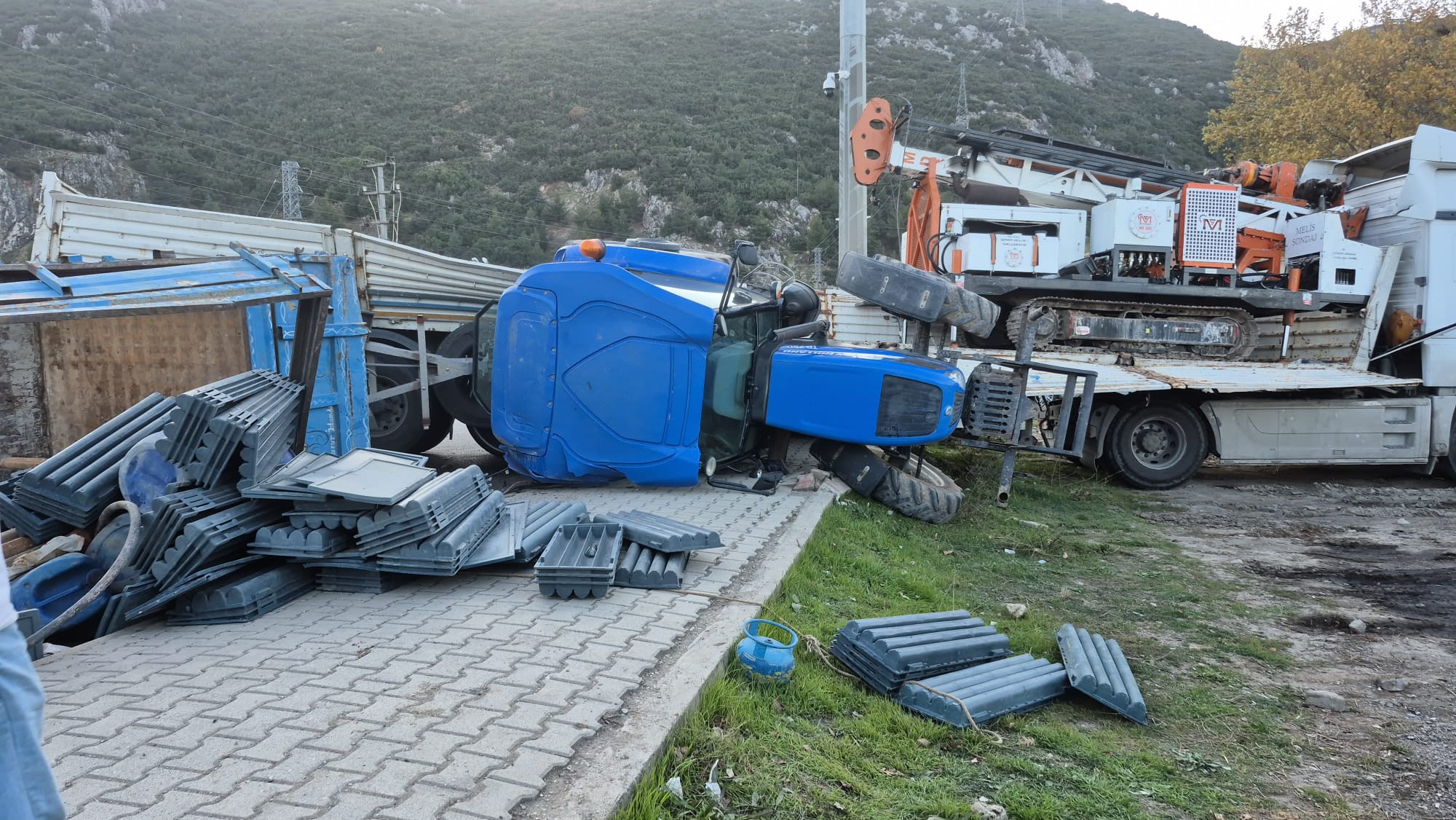 Eğirdir’de Sondaj Yüklü Tır Kazası: Traktör ve Malzemeler Yola Savruldu